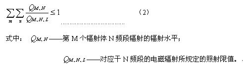 4.4.3 在對輻射水平進行評價時,應(yīng)考慮到某一輻射體可能存在的幾種輻射頻率的貢獻以及多個輻射作的貢獻,即應(yīng)滿足式(2):