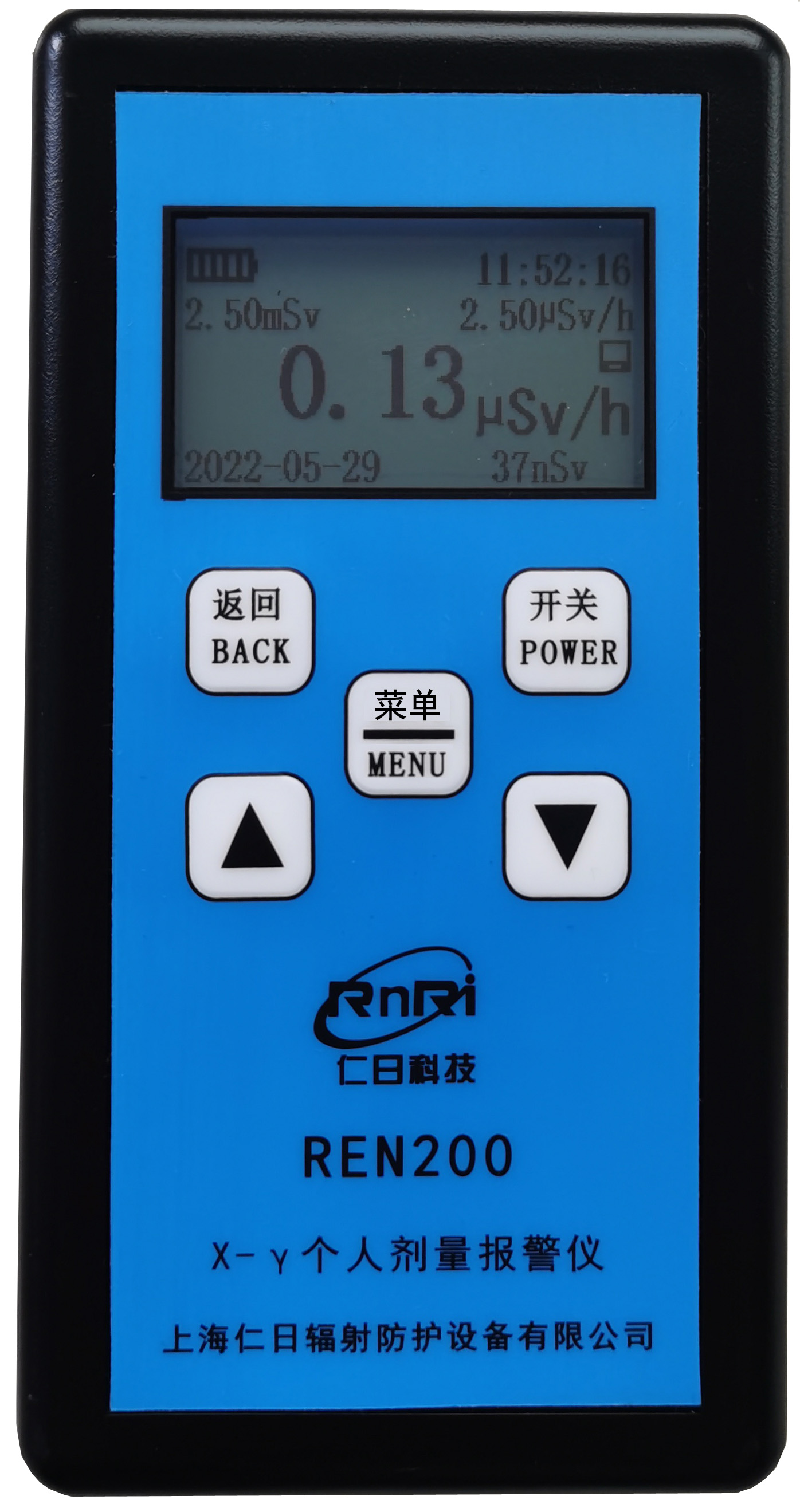 REN200型X、γ個人劑量報警儀(又叫X、γ輻射個人劑量當量HP(10)監(jiān)測儀)內(nèi)置高靈敏度蓋格計數(shù)管為探測器,主要用來監(jiān)測各種放射性工作場所的X、γ以及硬β射線的輻射,具有響應快,測量范圍寬的特點。能顯示工作場所的劑量當量率和累積劑量,更換電池時,日期及累積數(shù)據(jù)能永久保存?蛇x配RenRiPersonal個人劑量管理軟件,該軟件可存儲多個人的歷史數(shù)據(jù),能記錄日累積、月累積、年累積、輻照時長、計算平均劑量率、扣除或不扣除本底輻射,且以文字和圖譜的方式展現(xiàn)數(shù)據(jù)。廣泛應用于核電站、加速器、鋼鐵、化工、同位素應用、醫(yī)院、工業(yè)X、γ無損探傷、放射醫(yī)療、鈷源治療、γ輻照、放射性實驗室、核設施周圍環(huán)境監(jiān)測等領域中的工作人員進行個人安全防護監(jiān)測及放射性提示。
