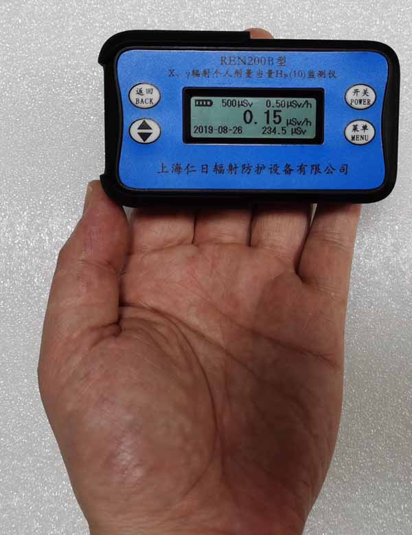REN200B型X、γ輻射個(gè)人劑量當(dāng)量HP(10)監(jiān)測儀(簡稱:個(gè)人劑量報(bào)警儀)內(nèi)置高量程蓋格計(jì)數(shù)管為探測器,主要用來監(jiān)測各種放射性工作場所的X、γ以及硬β射線的輻射,具有較寬的測量范圍。能顯示工作場所的劑量當(dāng)量率和累積劑量,更換電池時(shí),日期及累積數(shù)據(jù)能永久保存?蛇x配RenRiPersonal個(gè)人劑量管理軟件,該軟件可存儲多個(gè)人的歷史數(shù)據(jù),能記錄日累積、月累積、年累積、輻照時(shí)長、計(jì)算平均劑量率、扣除或不扣除本底輻射,且以文字和圖譜的方式展現(xiàn)數(shù)據(jù)。廣泛應(yīng)用于核電站、加速器、鋼鐵、化工、同位素應(yīng)用、工業(yè)X、γ無損探傷、放射醫(yī)療、鈷源治療、γ輻照、放射性實(shí)驗(yàn)室、核設(shè)施周圍環(huán)境監(jiān)測等領(lǐng)域中的工作人員進(jìn)行個(gè)人安全防護(hù)監(jiān)測及放射性提示。